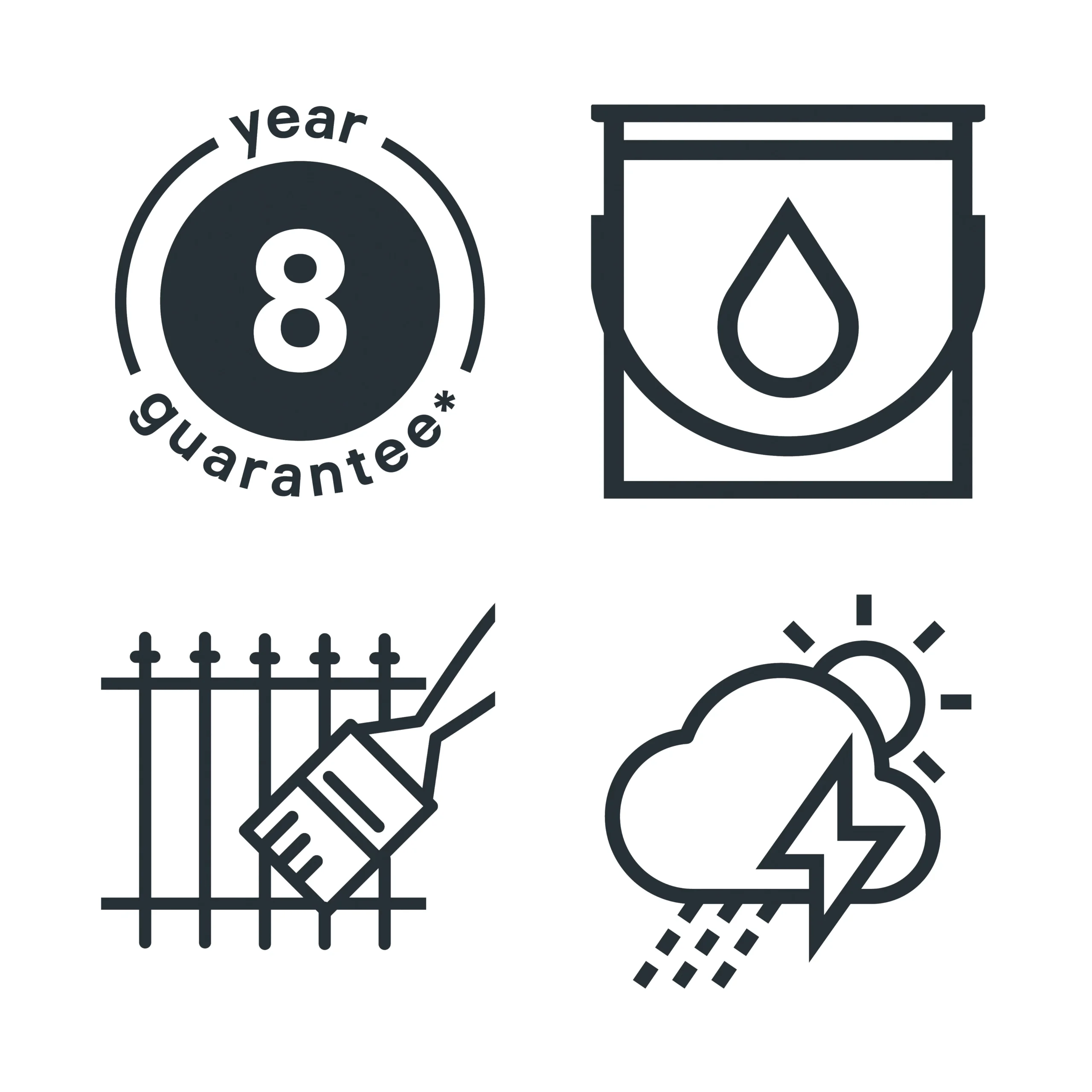 This gloss metal paint from the GoodHome Outdoor range is the perfect choice to renew your home exterior. Made to provide a rich, durable finish, you can be sure that this paint will look brilliant for longer. Black is a versatile colour that will suit any exterior design. The paint can be applied on ferrous and non-ferrous metal surfaces. Use this metal paint to create an effortlessly gloss finish with easy application and minimal cleanup. This 750ml tin will cover up to 9 m² on average. For the best outcome, apply using a brush or roller. This paint needs 2 coats to look its best, but its quick drying formula makes up for lost time, as you can recoat after just 4 hours. This paint offers top quality protection, designed to be resistant to rust, water, and ultraviolet, making it an ideal choice to use on surfaces outdoors. As well as looking brilliant, this water-based paint is safe for use in your home. It contains minimal VOCs, making it a safe choice for you and your environment.