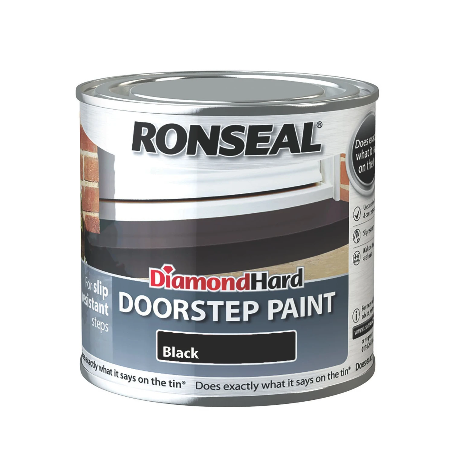 A washable, black doorstep paint in a satin finish. Covers up to 12 m² per litre and dries in 24 hours.