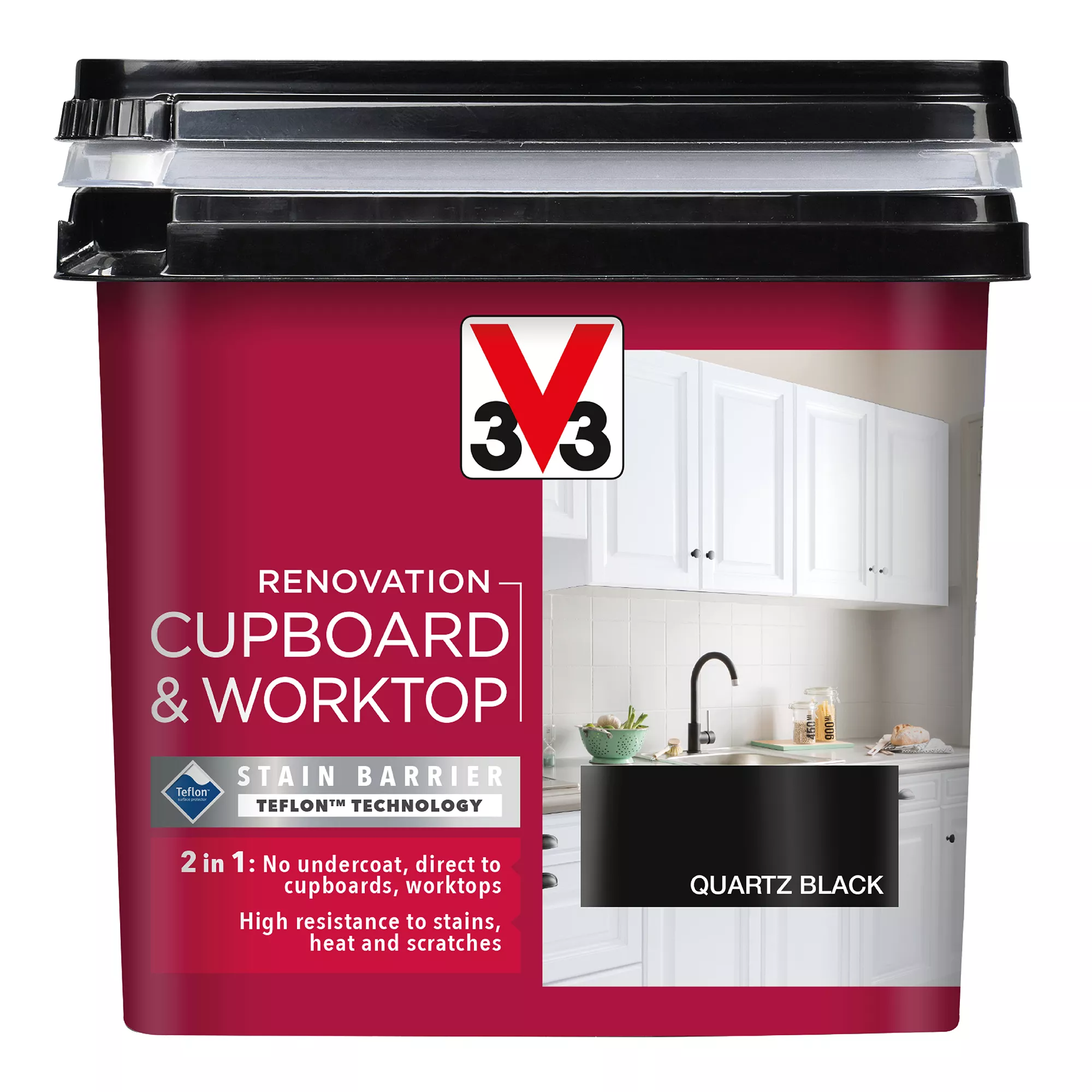 V33 Renovation Cupboard & Worktop paint has been specially developed to renovate high use surfaces. Thanks to a complex combination of exclusive polymers, the paint is extremely durable and resistant to culinary and domestic stains. It allows regular and easy cleaning without altering the colour and finish of the paint.